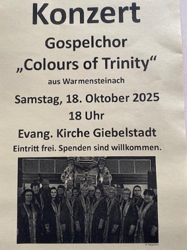 Was für ein musikalisches Wochenende in Giebelstadt: Samstag, 18.10.25, Konzert mit dem Gospel Chor "Colours of Trinity" und am Sonntag, 19.10.2025 die Veranstaltung "Giebelstadt musiziert" Vielen Dank an alle Beteiligten.